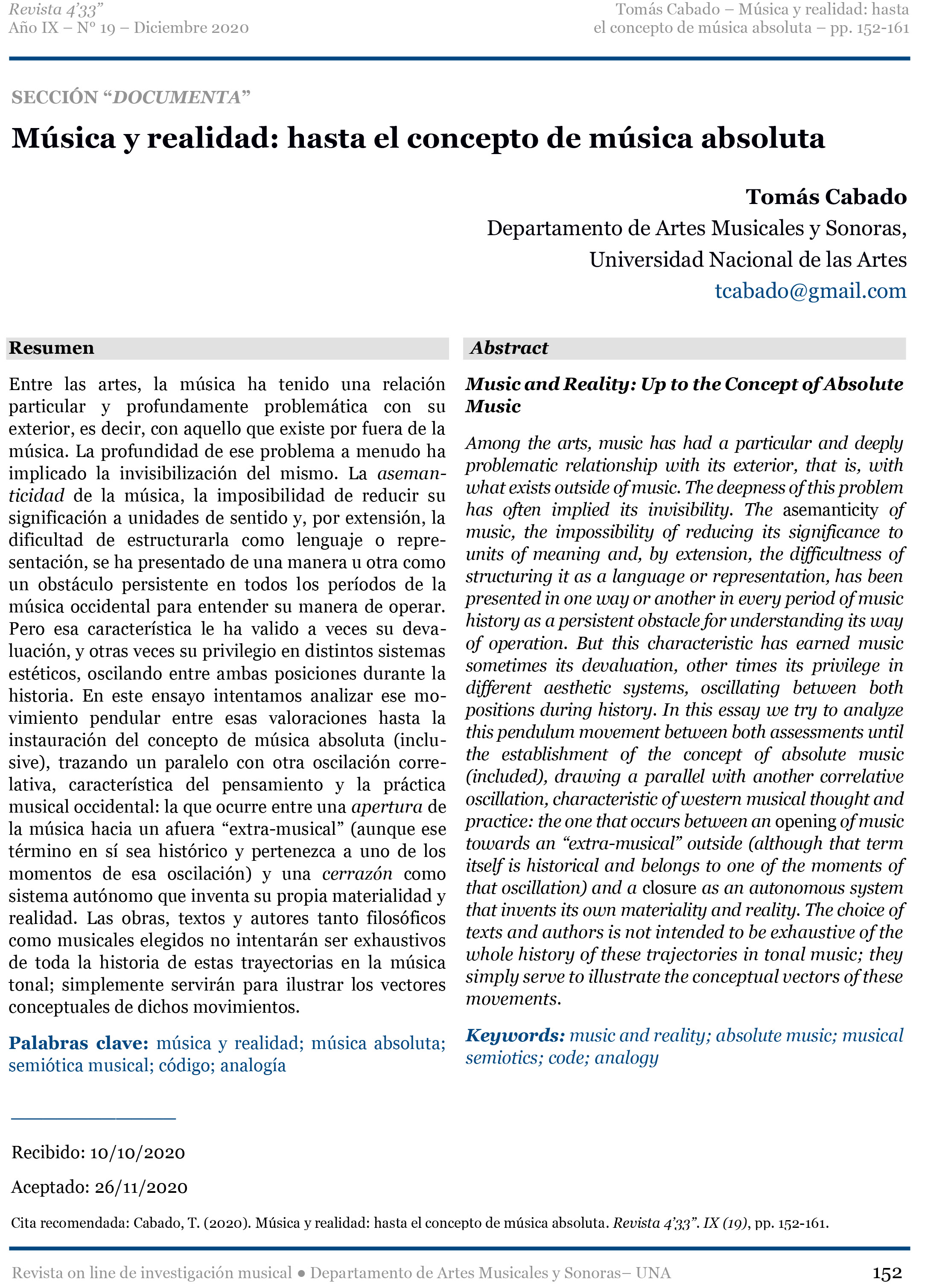 Comité de referato Dra. Mônica Lucas (Universidad de San Pablo, Brasil) Dra. Eugenia Costa Giomi (Universidad de Ohio, Estados Unidos) Mgtr. Dora de Marinis (Universidad de Cuyo) Dr. Omar García Brunelli (Instituto Nacional de Musicología UNA) Mgtr. Elena Dabul (Universidad de Cuyo) Lic. Héctor Luis Goyena (Instituto Nacional de Musicología UNA) Dr. Rubén López Cano (ESMUC, Barcelona, España) Dra. Clarisa Pedrotti (Universidad Nacional de Córdoba) Mtro. Julio Martín Viera (Academia Nacional de las Artes)